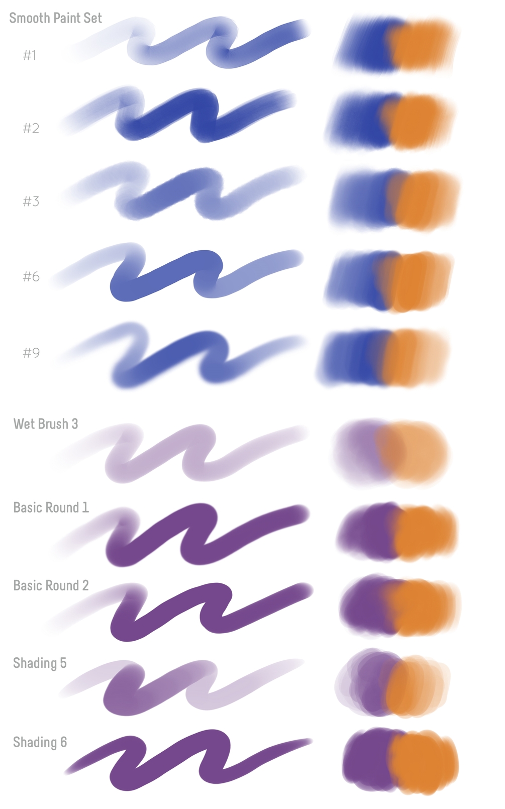 Shading - 12 soft and hard painting brushes for shading and blocking in color and shapes also some brushes good for blending